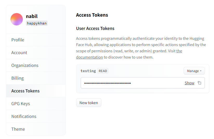 You need to login into huggingface on the command-line. It will prompt for the token that you just created on the website.